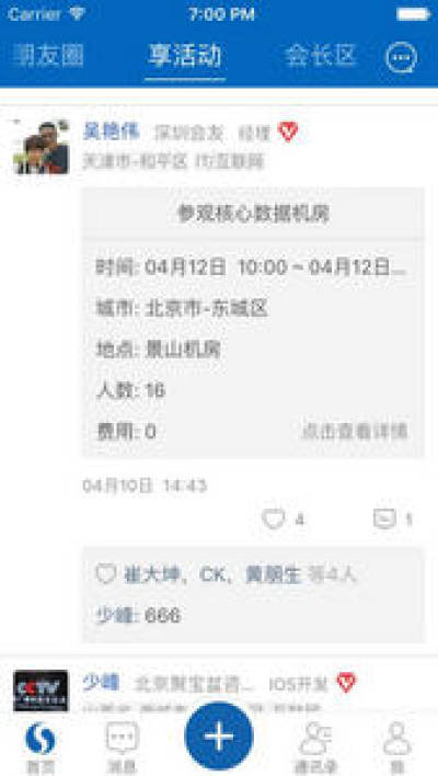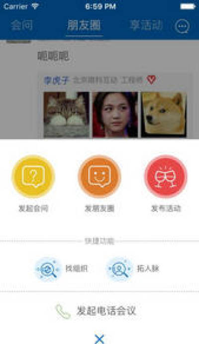 【精准社交】基于认证组织、组织推荐、实名制的真实会员社交平台,提供电子名片、朋友圈、享活动、匿名问答及查找组织及个人等。功能