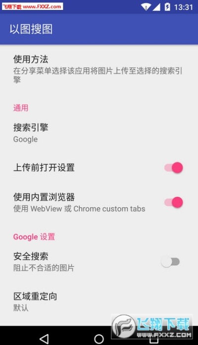 以图搜图通过分享上传图片调用google的以图搜图功能进行搜索,现在已经可以在应用内直接显示搜索结果了。