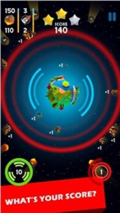 玩法新颖有趣特色十足,操作简单流畅易上手,游戏中加入了丰富的关卡供玩家挑战,你需要保护地球不受到陨石的袭击,按钮是有冷却时间的,你要合理运用。