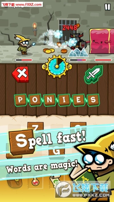 每一关给 10 个字母,随你怎么拼,单词的长短关系到攻击的高低,然后小巫师就挥着小魔杖打怪物,一道关卡一般有 4-6 个怪物,拼一次消灭一只,如果中间有 Boss,那就要拼两次。所以,可以看作 10 个字母必须拼出 6-8 组单词。