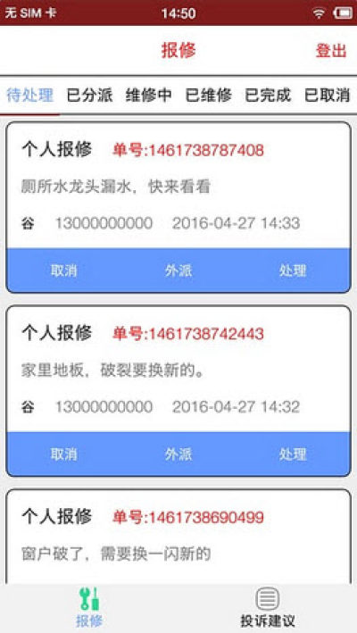 3.报修流程业务化,分段管理,处理完,师傅和业主会收到对应的通知;