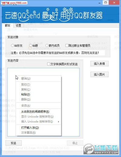 云速QQSend是一款绿色小巧的QQ群发软件;有了他,营销人员就可以批量项QQ好友、QQ群、群成员等发送广告信息,起到营销推广效果还可以跳过群主和管理员,降低被T群的概率,有兴趣的朋友快来下载试试吧!