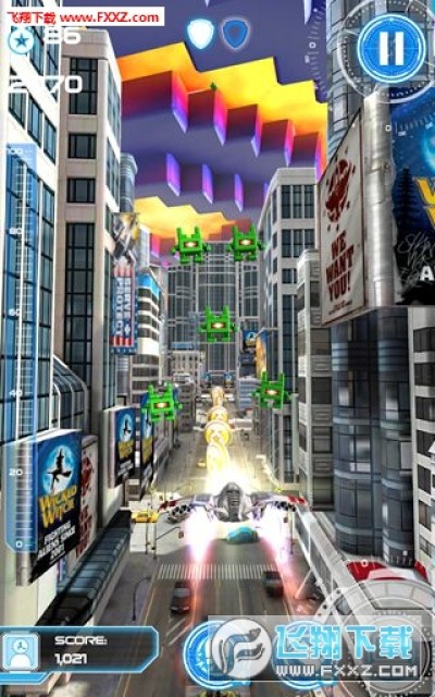 在摩天大厦之间急速飞行,轰炸敌人,抵抗侵略,保卫城市。