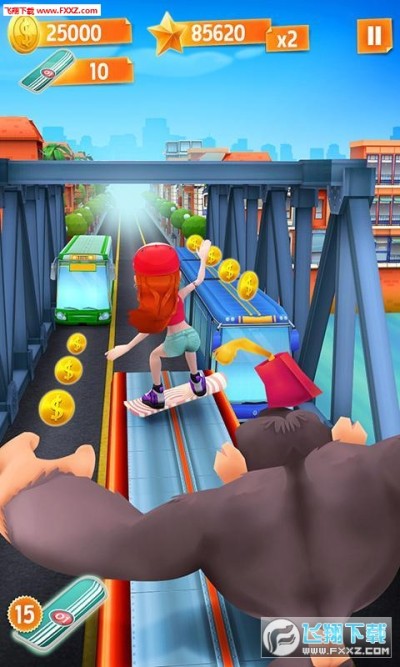 游戏中采用的是纯3D的画质,玩家会被各种猩猩进行追赶,并且在城镇、乡村、马路、地铁里面进行奔跑,体验无限的激情!