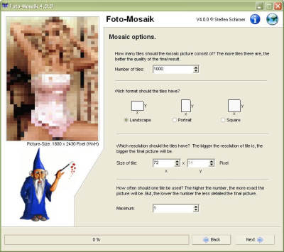 Foto-Mosaik可说是一套相当特别的软件,它可以将数张小图片“拼”成一张大图片。就如同我们小时候的游戏一样,将多种不同颜色纸撕碎,然再拼成一幅我们想要的图画。