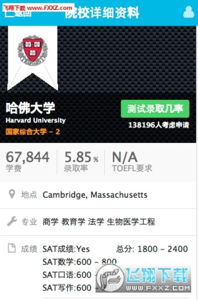 Zinch中国是一家提供免费选校服务的留学网站,是美国最大的教育平台Chegg旗下品牌之一。拥有国内最完善的美国大学及其他海外院校的信息库。 院校库搜索-你不仅可以搜索到美国院校、加拿大院校、英国院校、澳洲院校等,还可以查看世界大学排名情况。 GPA计算器-留学生必须的自助计算工具; 录取几率-根据你的TOEFL、SAT等成绩来测试意愿学校对你的录取几率,在测试结果中我们也会提供些辅助建议;