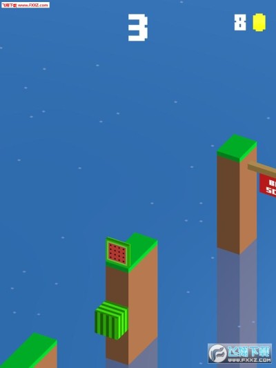 跳跃方块 Choppy Blocks 是一款考验预判的游戏,每次跳跃都可以积累 1 金币,凑齐100兑换新方块,方块不仅表面不一样,内部也不同。