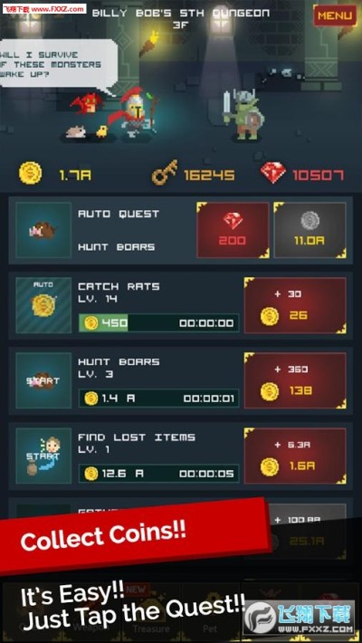 BB王子 The Prince Billy Bob 是一款真·放置游戏,甚至不需要控制战斗,只需要在有金币的时候替主角升级下装备。