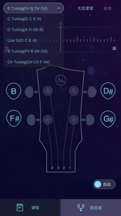 简单易用的尤克里里调音器和吉他调音器,专业无广告,免费实用,识别精准,通过内置麦克风拾音,进行识别调音,识别每一根琴弦。