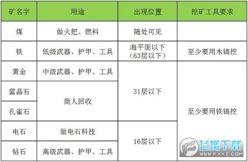 这就是《迷你世界》最基本的7种矿石,从左到右分别是煤→铁→黄金→蓝晶→孔雀石→电石→钻石。