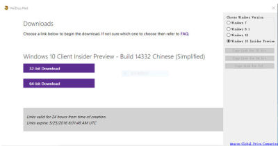 Microsoft Windows ISO Download Tool lets you download all versions of Microsoft 7, 8.1 and 10 directly from Microsoft's servers,可选择Windows7, 8.1 and 10 的版本和语种(包括简体中文)。