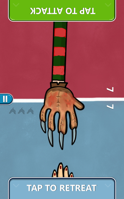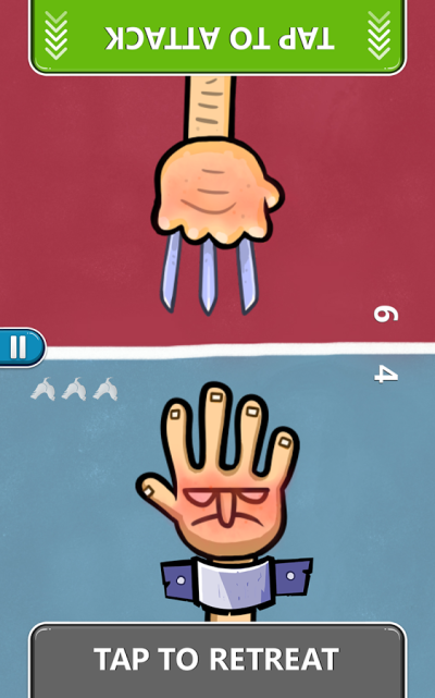 《红手 Red Hands》是一款回合对战的休闲类游戏。两名玩家分别控制手机的一半屏幕,点击屏幕让手发动进攻或者躲避袭击,如果击中则可继续进攻,否则攻防角色互换,随着命中的次数越来越多,手会被打的越来越红,如果你喜欢和朋友们比试一下谁的反应更快,这款游戏绝对是你最佳的选择!