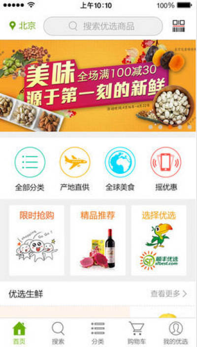 顺丰优选是顺丰商业旗下电商平台,经营精选的特色食品,并通过开放平台引入更为丰富的商品,涵盖全球美食、3C百货、海淘商品等多个品类,不断满足消费者对于品质生活的需求。