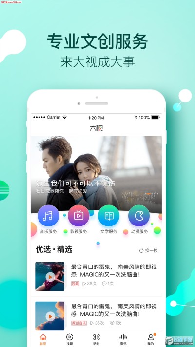 【文创】涵盖音乐服务、影视服务、文学服务、动漫服务等综合服务项目,不管你是想成为潮流音乐的传播者、演技炸裂的影星天后、心怀梦想的写手还是个性张扬的动漫COSER。大视拥有最专业的技能培训、最全面的服务团队、最优质的行业资源,为大学生及青年人提供实现梦想的舞台。