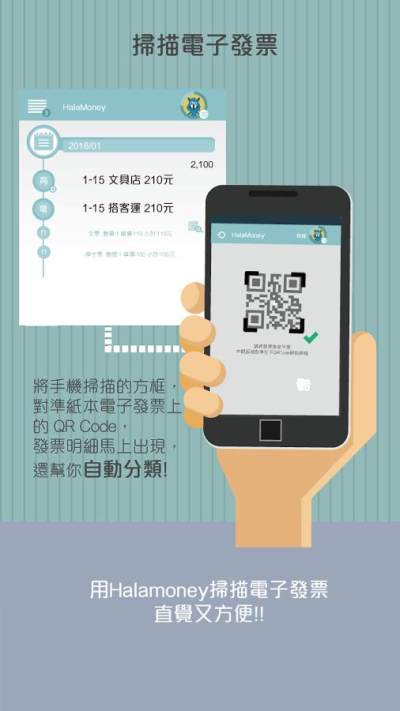 我们除了提供电子发票扫描功能外,更重要的是扫描后还能自动归类,让您的电子发票每笔消费都能自动对应到某个记帐归类。