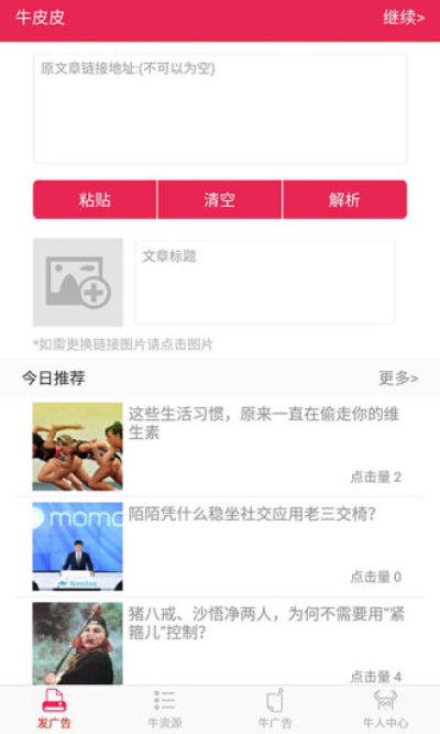 《牛皮皮》是一款在微信文章中插入广告和链接的手机图文编辑软件,阅读别人文章时,巧妙的顺便把自己的广告和连接插进去,达到借东风快速海量的传播效果,从而给带来主业副业双重收益的良好效果。