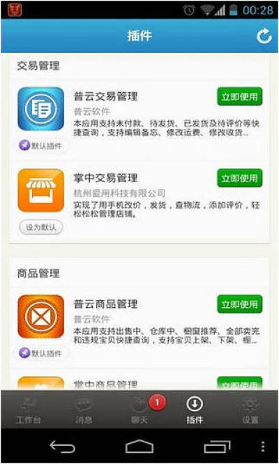 4.插件中心:商品管理、交易管理、数据统计等常用功能,均有多款插件供选择,分销商卖家可订购使用供销管理插件