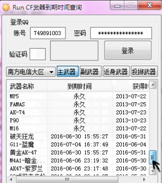 玩过CF的朋友们都知道里面最坑的一点就是很多收费武器都是限时的,经常一段时间不玩之后发现很多装备都过期了,CF武器到期时间查询器可以在不登陆游戏的情况下查询账号上武器的到期时间。