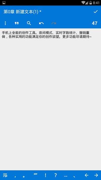 1.夜间模式2.实时字数统计3.文件管理4.完善的编辑功能更多功能还在陆续开发中。