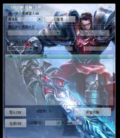 LOL CDK 皮肤兑换码生成器是一款能够帮助大家免费获取英雄联盟英雄皮肤兑换码的软件,工具生成的兑换码一般都能够使用,如果不能兑换请多使用几次。