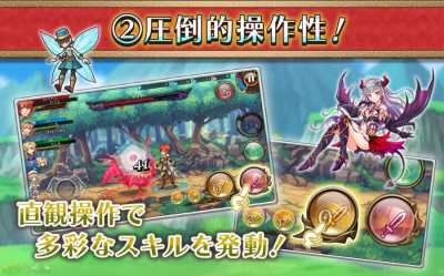 本作讲述了主人公和他的伙伴们率领「革命军」为了夺回被地国军占领的王都而展开冒险之旅,是一款2D动作RPG手游。本作最大的特征通过2个按钮发动可以拥有各种不同组合机能的「技能选择」系统,还有击飞敌人后,在空中展开连击的「空中连击」系统。玩家在游戏中可以使用多种职业组成队伍,去挑战各种难度的敌人和关卡。