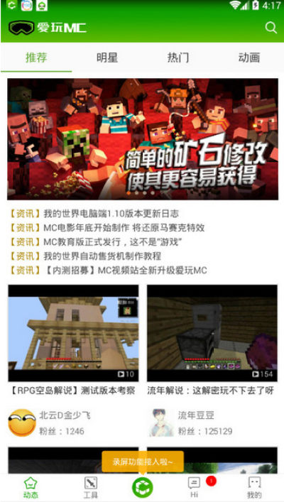 酷炫特色社交:送礼、陪玩、吐槽、加粉、打赏、挑战…和全国的MC玩家一起玩游戏录视频,给力!(我在这等你)