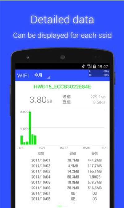高精度的数据使用测量 - 该应用程序让你的数据使用量的精确测量,没有在任何时刻任何不一致。 Wi-Fi数据使用测量每个SSID举办。
