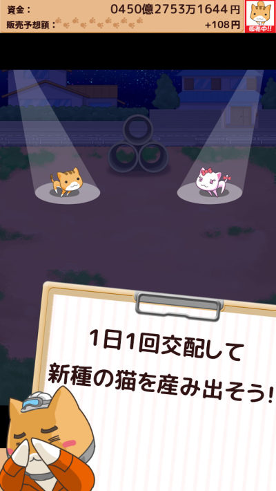 《拯救舍弃的猫》是一款放置育成游戏。本作是将出现的猫咪按照育成→寄存→卖的流程而进行的简单游戏。使用饲料的数量或者种类增加生产力,从而增加金钱。猫咪的种类有40种以上。增加生产力可以发现新品种的猫咪。
