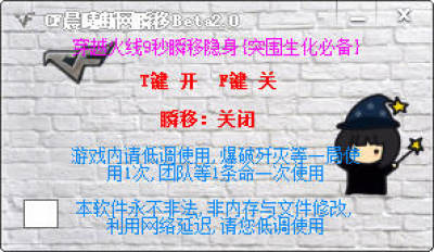 cf晨曦断网瞬移工具是一款玩穿越火线生化模式必备的游戏辅助工具。只需要一键点击开关就能够获得9秒瞬移隐身,僵尸怎么样都不会抓到你。