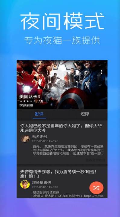 提供最新的电影介绍及评论包括上映影片的影讯查询;极简的界面,含已读、未读标记;给你带来无缝的连贯阅读体验;完美适配手机、平板显示。