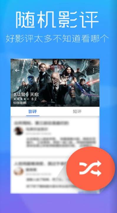 1.替换了新的logo图标和文字风格;2.增加了长评查看列表;3.增加了查看剧照的功能;4.增加了影评的分享给你。