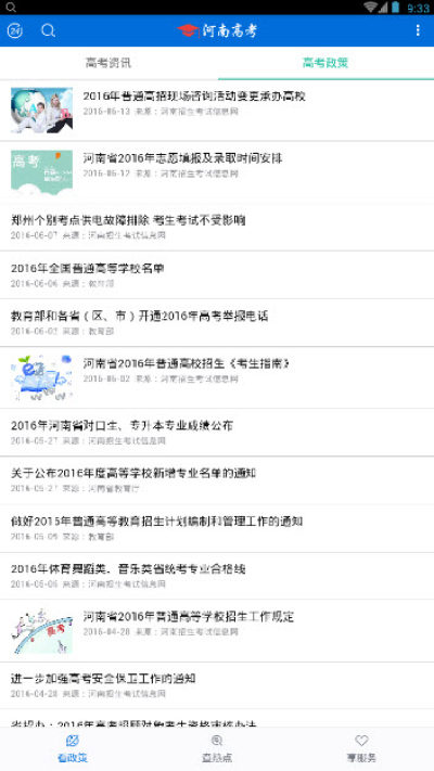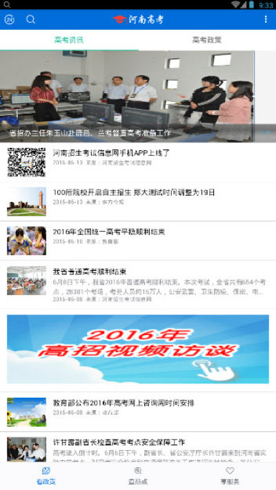 1.看政策——及时获取省招办发布的高招资讯、招生政策。