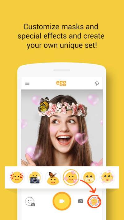 egg这款手机自拍摄影app的功能与贴纸相机非常相似,不过它上面的贴纸更多的是3D面具之类的,用它制作出来的短视频效果非常好。