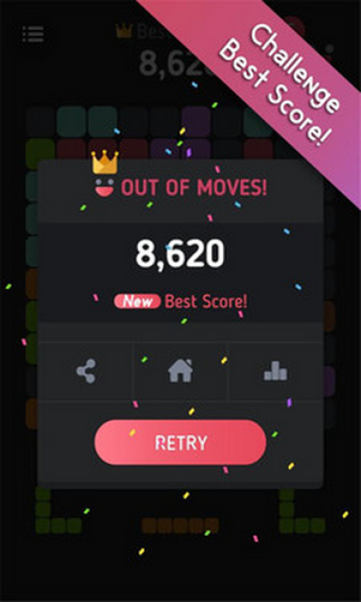 《炫彩方块1010》是一款休闲类的手机拼图游戏,游戏中,玩家需要将相同的颜色拖到到一起,就能进行消除,游戏没有时间限制,但是比较考验人的空间能力!