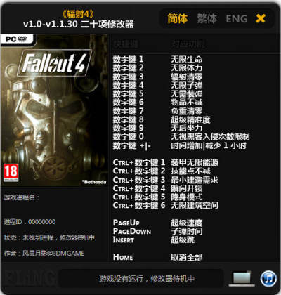 辐射4二十项修改器是大型单机游戏《辐射4》的一款辅助工具,由风灵月影工作室制作。使用之后可以修改游戏的无限体力生命子弹等各种属性,需要的千万不要错过。