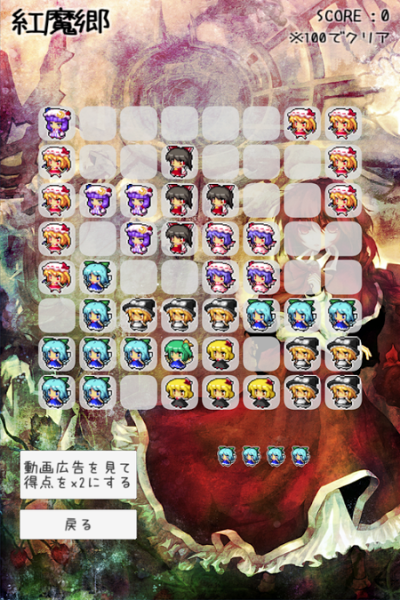 《东方消砖块》是一款消除类游戏。让横或者竖排3个一样的角色相连就能消除。同时消除多列可以获得加倍的分数。