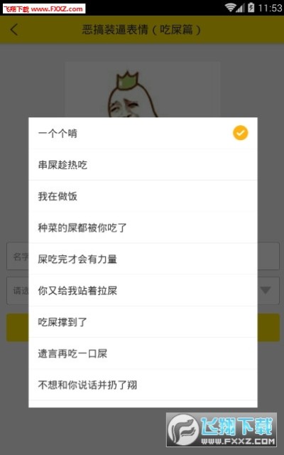 1、打开软件,选择恶搞装逼表情吃屎篇;