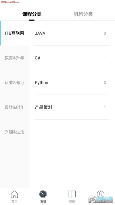 2、发现:分类查找课程和机构,更快遇见你喜欢的课程和机构;