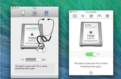 Trim Enabler是一款针对MAC OS X系统推出的中开启第三方的支持的工具软件,如果加装固态硬盘后,被默认禁用,无法启用,单击实现添加到菜单栏,除了开关,用于开启/关闭调整功能的图标,用户可以检查制造商安装的固态硬盘的温度。