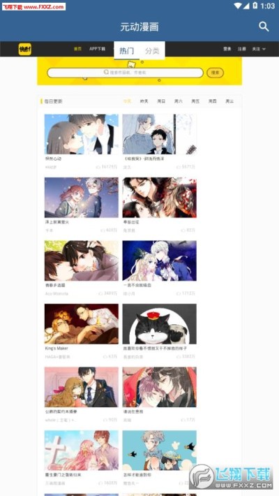 3、热门、新番、经典漫画一应俱全,紧贴网络进度,实时更新提醒,从此追看漫画不用再等待。