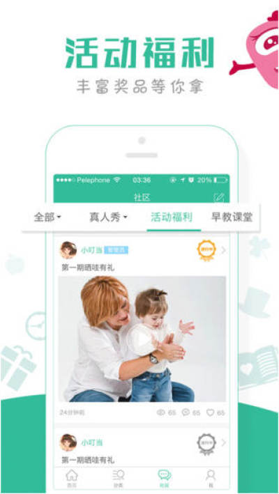 1.社区新增早教课堂版块,专业早教随时随地轻松学;