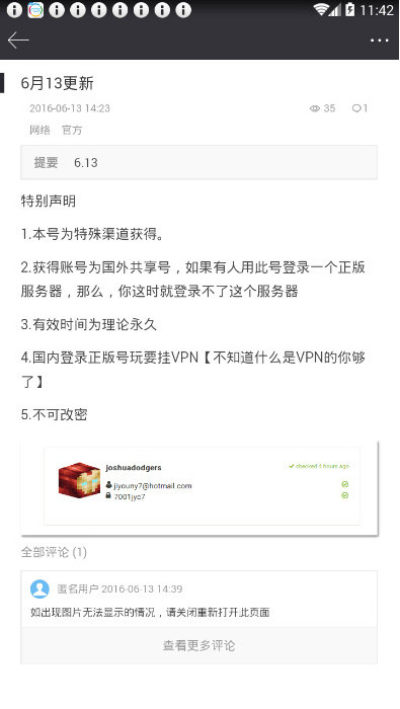 2、获得账号为国外共享号,如果有人用此号登录一个正版服务器,那么,你这时就登录不了这个服务器