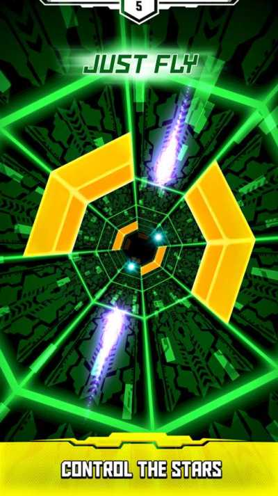 《星飞》这款游戏需要控制两个明星在同一时间和他们开车进入隧道,每一个块是一个致命的碰撞。