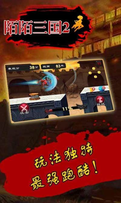 陌陌三国2是一款以三国为背景题材的休闲跑酷类手机游戏,游戏中玩家可以一边进行跑酷躲避障碍物一边使用武器击杀敌人,丰富的游戏关卡,充满乐趣的系统,赶紧来体验试试吧!