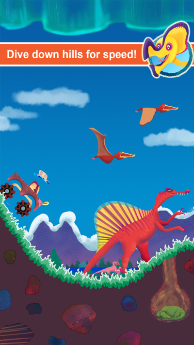 DinoMash是一个超级有趣令人上瘾的驾驶游戏,下坡时你只需点击屏幕并保持长按,从而积累速度,并在上坡时松开手指,游戏的最终目标是尽可能的行驶更远的距离,打破你自己之前的距离分数,当然了,还要打破排行榜的最佳记录哦!哦对了,为了让游戏更有趣,你穿越到了充满恐龙的惊艳史前风景地貌中,你可以借助它们实现“跳跃和加速”,进一步加强你疯狂的驾驶技能!