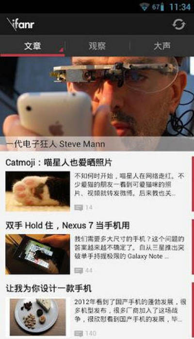 1、查看爱范儿主站最新文章、观察及大声栏目内容;