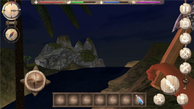 游戏操作十分简单,简单的点击即可获得你想要的东西,流畅的虚拟摇杆操作,另外还有四个生命性能指示,治愈在适当的时候补充水分哦,还有注意休息,游戏还设定了指南针罗盘,更有时钟指示哦。