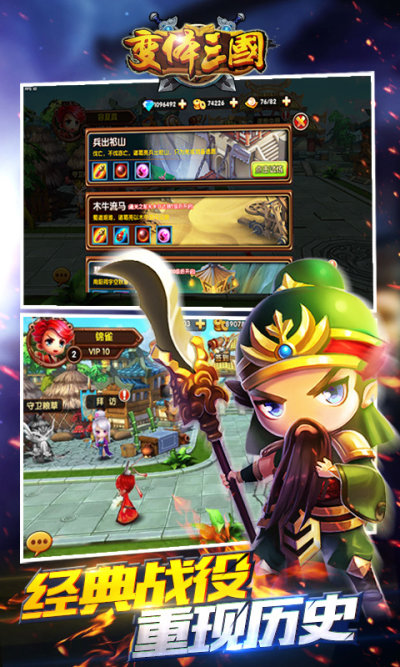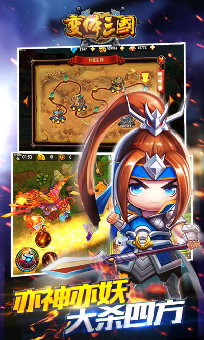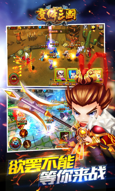 变体三国是一款非常经典而且画风非常Q萌的动作类卡牌手游,精美的画质,炫酷的技能表现,给你带来无限的激情,加上多武将选择,喜欢的快来试试吧!
