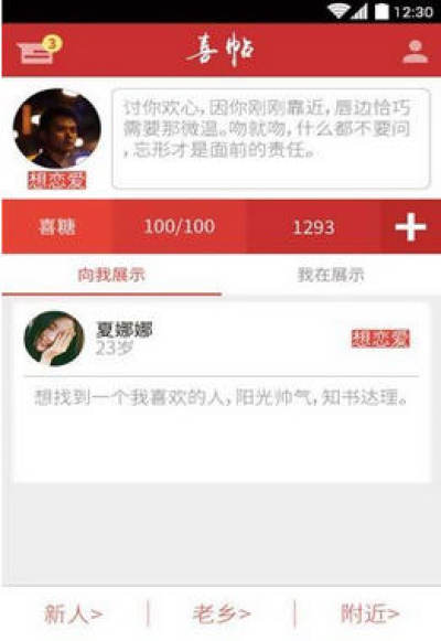 喜帖是年轻人恋爱的平台,这里有很多寻找真爱的年青人正在等待有缘人的出现!你可以在这里展示你自己从而遇到心怡的那个他,找到你的另一半来喜帖app吧!