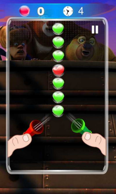 《光头强大决战》快点来帮助光头小强扎气球吧!光头小强在扎气球,他需要你的帮助!左右手控制,看清楚气球的颜色,选择不同颜色的针去扎破相同颜色的气球!在限定的时间内,看谁扎破了最多的气球,谁就是光头小强最好的伙伴。
